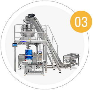 • 自動稱重+包裝+封口