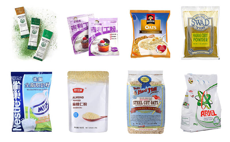攬德LD-420D/520D/720D粉末包裝機可以完成計量、充填等工作,適用于計量那些易流動或流動性差的粉粒物料;如奶粉、蛋白粉、面粉、固體飲料、可可粉、雞粉、白砂糖、食品添加劑、飲料、醫藥原料、染料、香精香料等。包裝的款式多樣化,背封、插角、連袋,沖孔等。